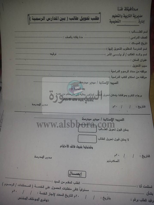 ننشر طلب تحويل طالب بين المدارس الرسمية