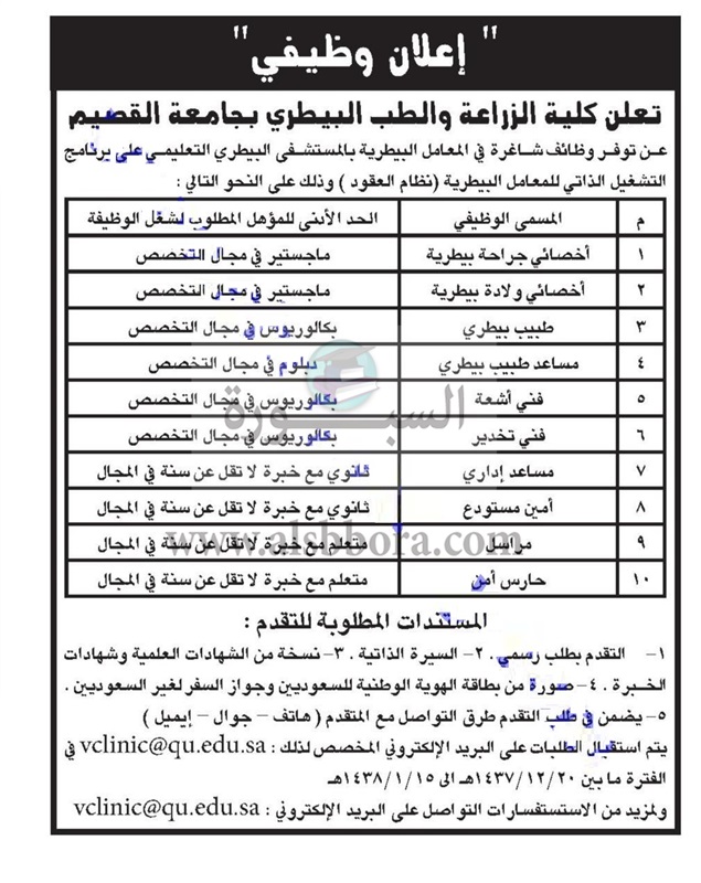 السعودية عن وظائف شاغرة لحملة الماجستير والدكتوراة وذلك وفقا لنص الاعلان التالي: