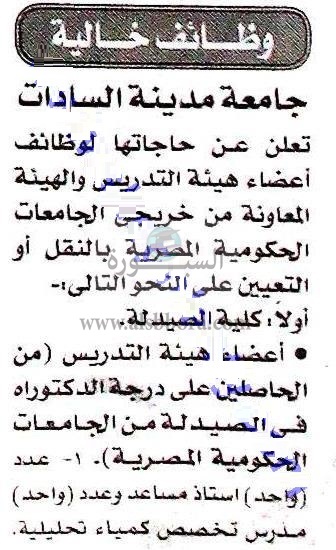 تعلن جامعة مدينة السادات عن وظائف جديدة لأعضاء هيئة التدريس وذلك وفقا لنص الاعلان التالي: