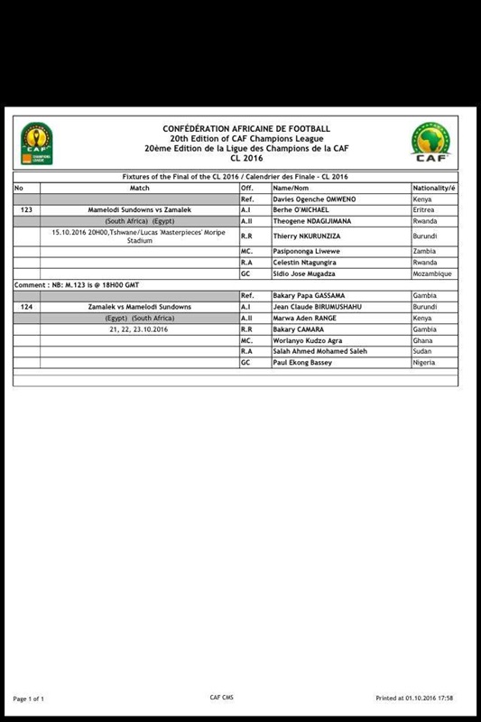 بكارى جاساما يدير مباراة الزمالك وصن داونز فى القاهرة