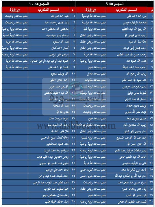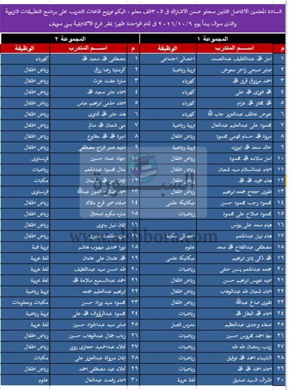ننشر اسماء المعلمين الذين سجلوا فى الـ30 الف.. وتوزيع قاعات التدريب على برنامج التطبيقات التربوية والذى يبدأ فى 9 أكتوبر