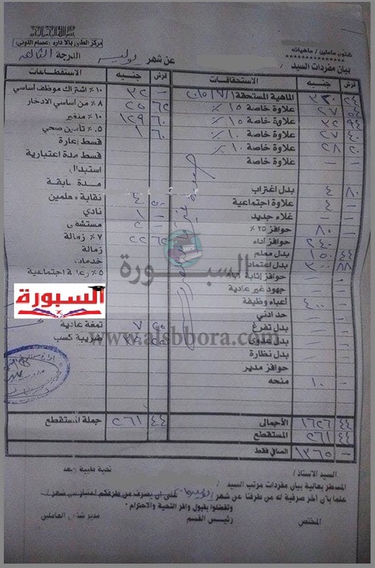 ينشر موقع مفردات مرتب حديث التعيين لمعلم تم تعيينه قى مارس 011، بينما ننشر مفردات مرتب لوكيل نيابة تم تعيينه فى نفس التوقيت، حيث تقاضى المعلم صافى مرتبه مبلغ 1365 جنيها، بينما جاء مرتب وكيل النيابة 12704 جنيه فقط لاغير.