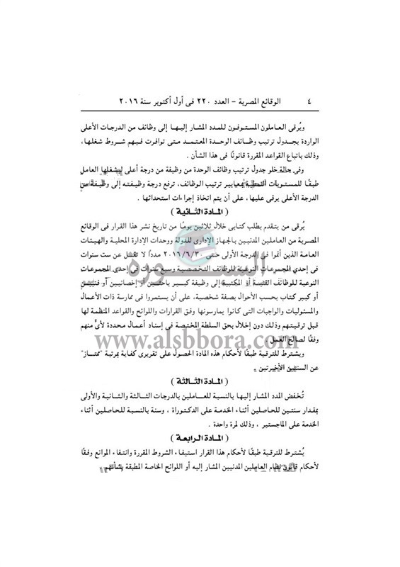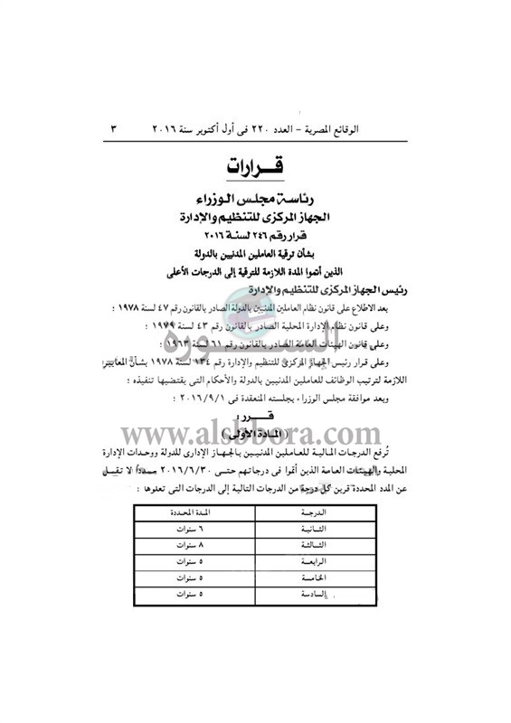 وتضمن القرار والذي تم نشره بالجريدة الرسمية المدد الزمنية اللازمة للترقية والمحددة كالتالي :-