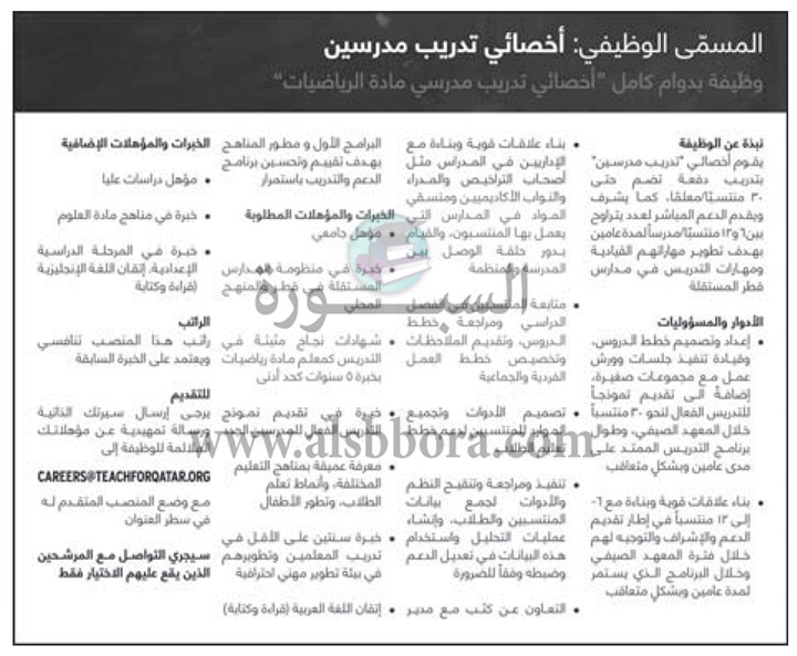 قطر تعلن عن حاجتها الى مدربين للمدرسين.. ننشر نص الاعلان