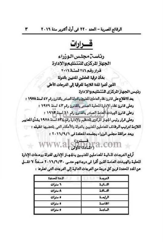 مجلس الوزراء: رفع الدراجات المالية للعاملين للعاملين بالدولة الذين أتموا درجاتهم حتى 30/6/2016.. ننشر نص القرار