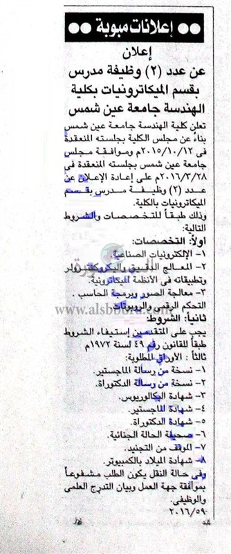 تعلن جامعة عين شمس عن وظائف جديدة لأعضاء هيئة التدريس وذلك وفقا لنص الإعلان التالي: