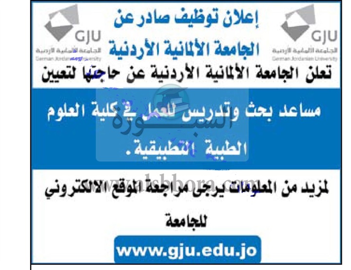 تعلن الجامعة الألمانية بالمملكة الاردنية الهاشمية عن حاجتها الى أعضاء هيئة التدريس، وعلى الراغبين فى التقدم الاطلاع على موقع الجامعة المنشور فى الاعلان التالى: