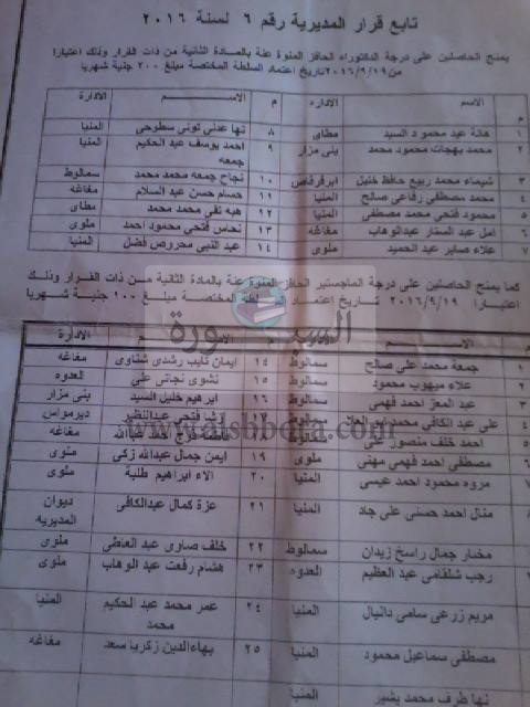 أعلنت مديرية التربية والتعليم بمحافظة المنيا عن حق الحاصلين على درجة الدكتوراة حافز 200 جنيه، والحاصلين على درجة الماجستير مبلغ 100 جنيه، وأعلنت اسماء الحاصلين على الحافز، واستكمال إجراءات الحافز كالتالى: