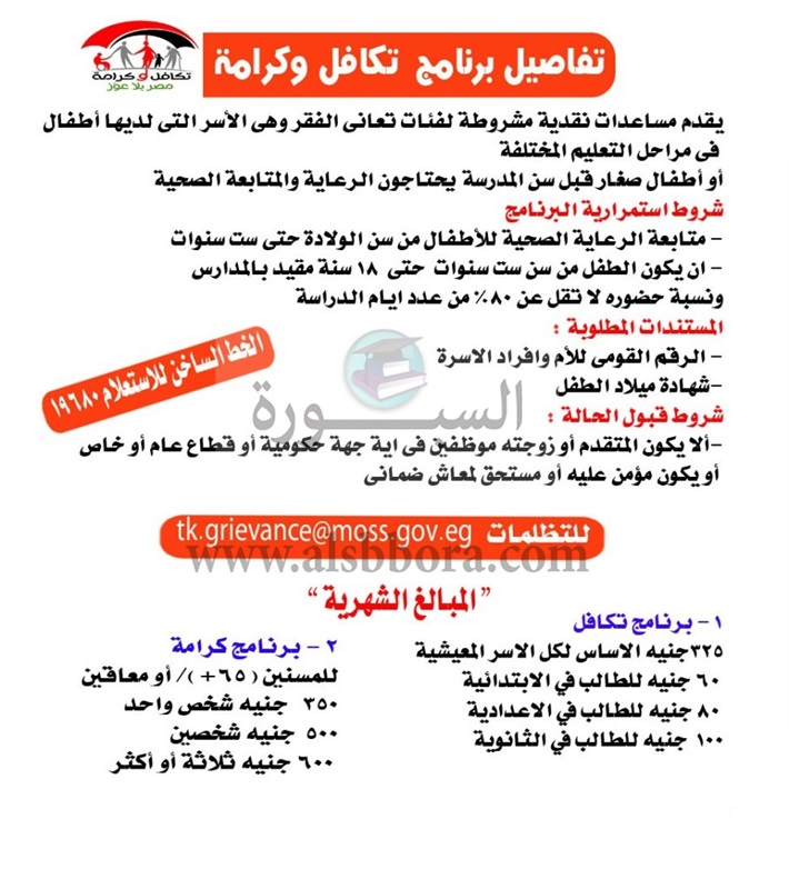 ننشر كيفية التظلم لمن لم يندرج اسمه فى برنامج تكافل وكرامة