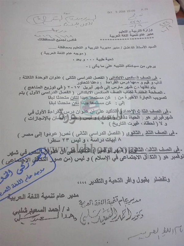 ينشر موقع السبورة تعديل مناهج اللغة العربية للصف السادس الابتدائى والثالث الاعدادى والثالث الثانوى، بناء على الفاكس الوارد من مدير عام تنمية اللغة العربية بوزارة التربية والتعليم الى موجه عام اللغة العربية بجميع المدريريات التعليمية.