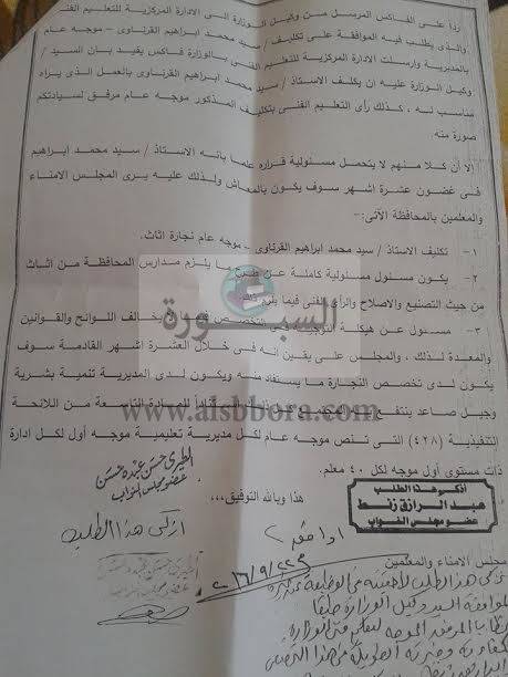 كما انه مسؤلا عن هيكلة التوجيه الفني في التخصص فيما لايخالف اللوائح والقوانين خاصة بعد تكدس 65 مدرسا بمدرسة واحدة.