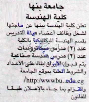 تعلن جامعة بنها عن وظائف جديدة لأعضاء هيئة التدريس وذلك وفقا لنص الإعلان التالي:
