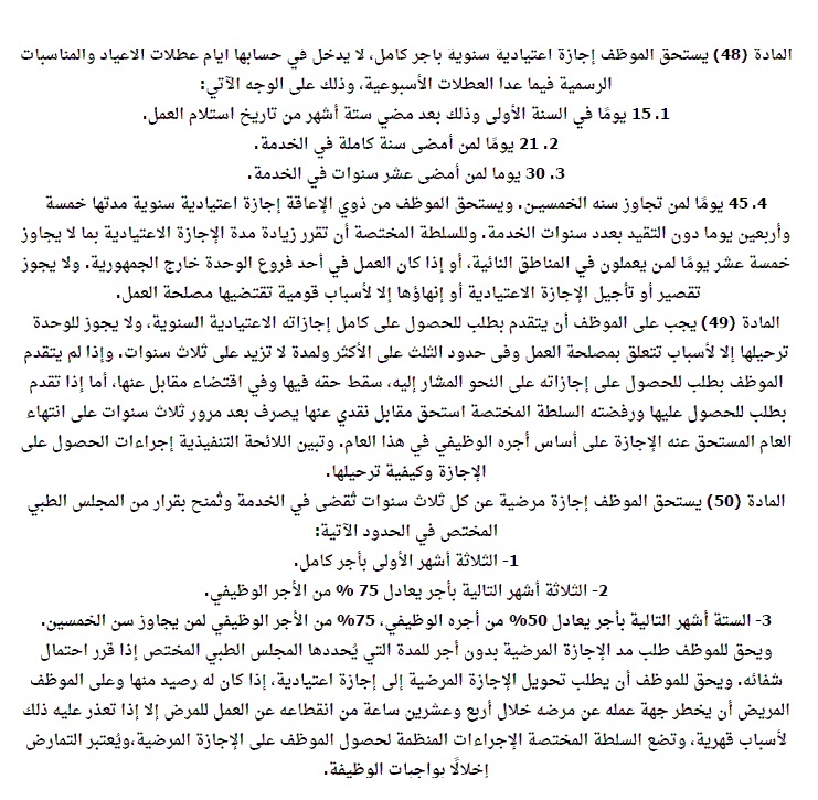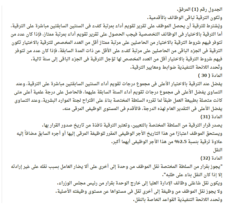 ننشر قانون الخدمة المدنية الجديد كاملأً " الاجازات - الاجور والعلاوات - الترقيات - انتهاء الخدمة " لجميع العاملين بالدولة