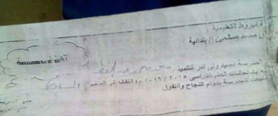 عجائب وطرائف التعليم فى مصر.. مدرسة بأسيوط تعيد طالبا للصف الخامس بحجة رسوبه بعد شهر من انتقاله للصف السادس الابتدائى.. ولى الأمر: استلمنا شهادة النجاح العام الماضى ولصالح من تم التلاعب فى نتيجة ابنى.