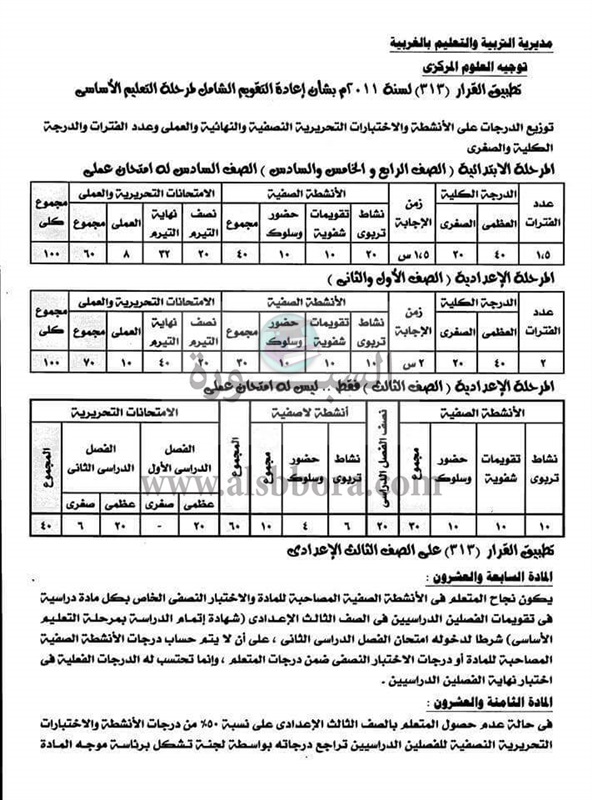 بالمستندات| ننشر توزيع درجات جميع المواد الدراسيه لجميع المراحل التعليمية "من الابتدائي وحتى الثانوي" للعام 2016 / 2017