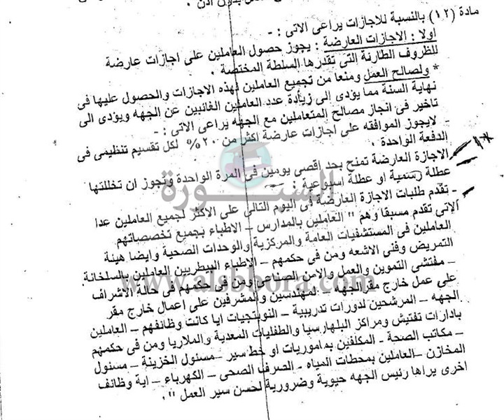 ينشر موقع السبورة الاجازات العارضة الممنوحة للعاملين بالدولة والمعلمين، ويجوز حصول العاملين على اجازات عارضة للظروف الطارئة التى تقدرها السلكة المختصة، كما جاء فى نص المادة 12 من قرار محافظ قنا رقم 696 لسنة 2014، ومنها لايجوز الموافقة على اجازات عارضة أكثر من 20% لكل تقسيم تنظيمى فى الدفعة الواحدة، ولمزيد من التفاصيل عبر القرار التالى: