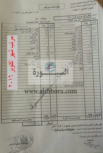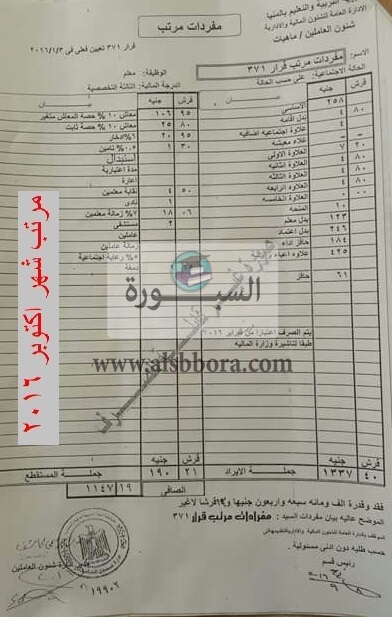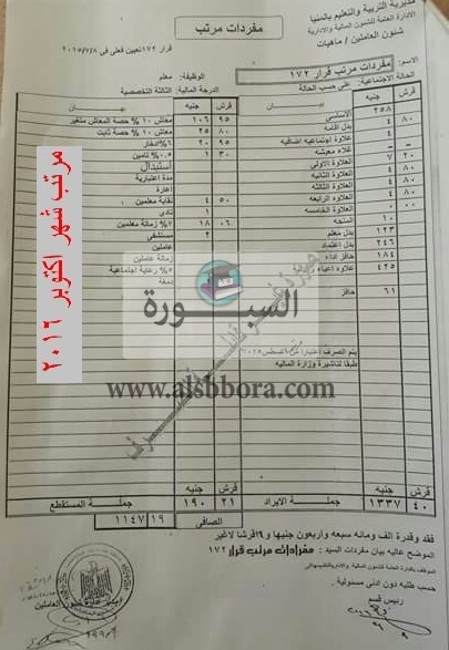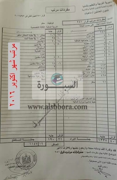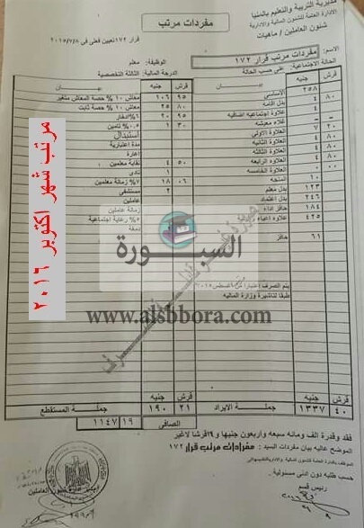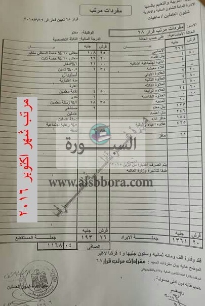 ننشر مفردات رواتب شهر أكتوبر للمعلمين المعينين حديثا بقرارات أرقام 250 و74 و53 و271 و68 و231 و93 و423