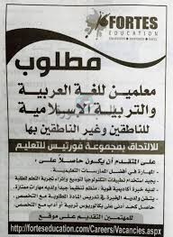تعلن مجموعة فورتس للتعليم بدولة الامارات العربية المتحدة عن حاجتها الى معلمين، وعلى الراغبين فى التقدم ارسال السيرة الذاتية على الايميل المنشور عبر الاعلان التالى: