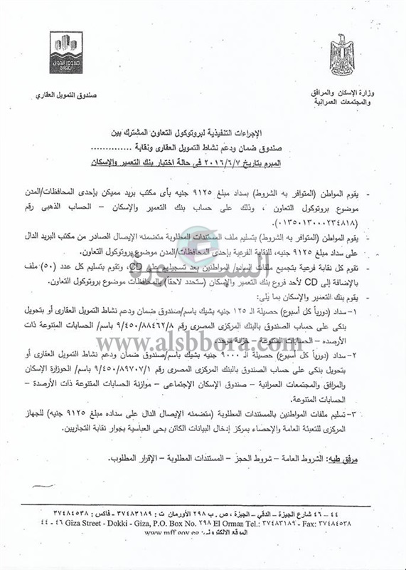 الإسكان الاجتماعى ويرفق بالملف صورة إيصال إيداع مقدم الحجز ومصاريف الإستعلام