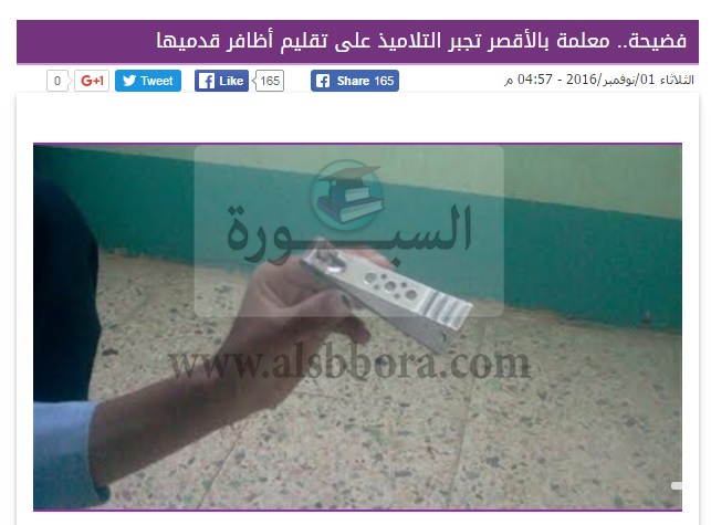 وكان موقع"السبورة" قد نشر هذا الخبر أمس تحت عنوان "فضيحة ... معلمة بالاقصر تجبر التلاميذ على تقليم اظافر قدمها".