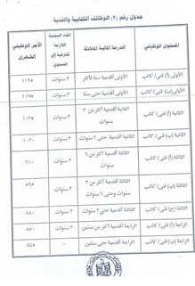 وبذلك ستكون رواتب العاملين بالدولة طبقا لقانون الخدمة المدنية الجديد الذي تم اقرار العمل به كما يلي:
