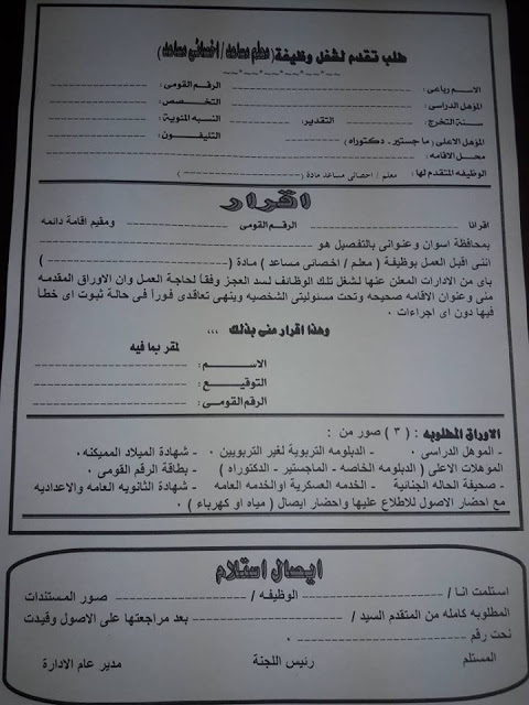 ننشر نموذج التقديم لمسابقة وزارة التربيه والتعليم للتعاقد مع 500 معلم