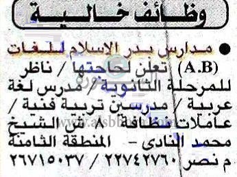مدارس بدر الاسلام للغات تعلن عن وظائف جديدة للمعلمين..ننشر نص الإعلان