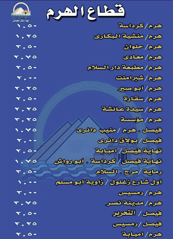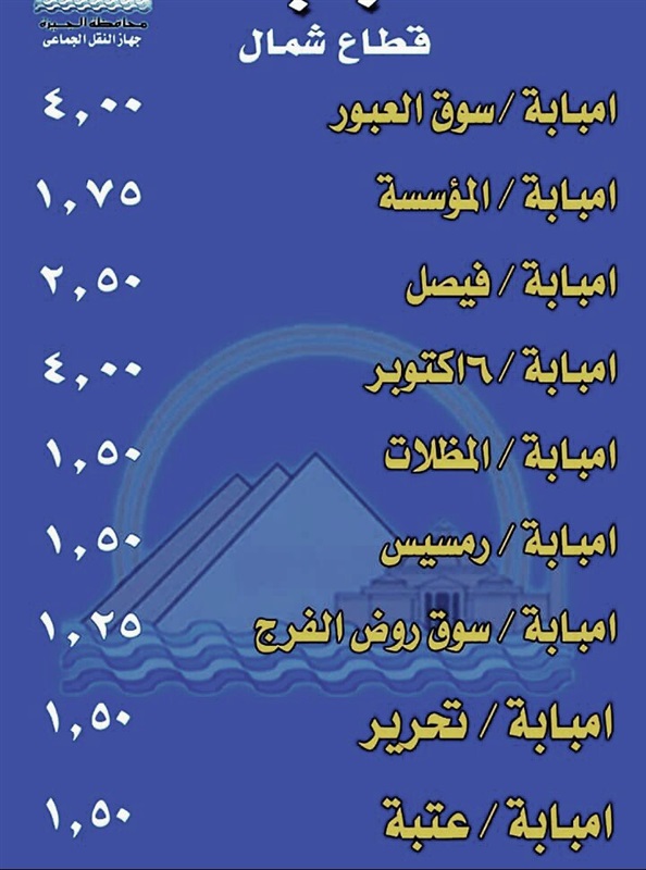 تعرف..على التعريفه الجديدة للنقل العام بالجيزة