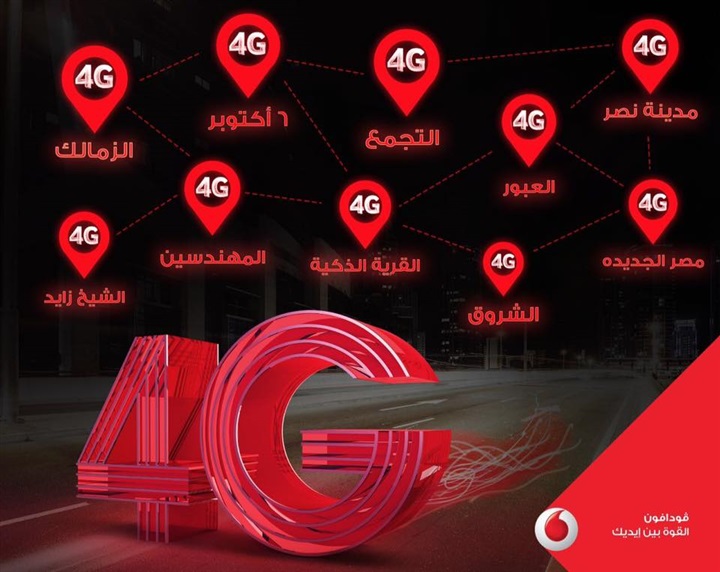 وقالت شركة فودافون مصر، عبر صفحتها على موقع التواصل الاجتماعي "فيس بوك"، "استمتع بتشغيل تجريبي للـ4G من ڤودافون في كل المناطق دي ولسة مكملين في تغطية مناطق أكتر".