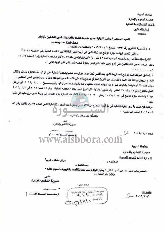 بالمستندات| التنظيم والادارة: احقية الموظفة مد إجازة الوضع من 3 شهور الى 4 شهور بعد صدور قانون الخدمة المدنية