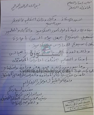 عاجل.. فى انتظار موافقة المحافظ.. السبت إجازة أسبوعية بمدارس الأقصر