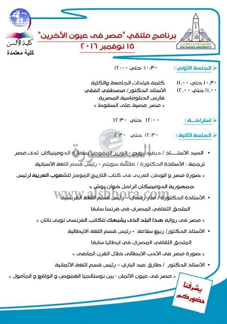 15 نوفمبر ملتقي "مصر في عيون الأخرين " بألسن عين شمس