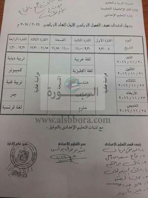 فيما تبدأ امتحانات نصف الفصل الدراسي للمرحلة الاعدادية يوم الأحد الموافق 20 نوفمبر و تنتهي الخميس 24 نوفمبر .