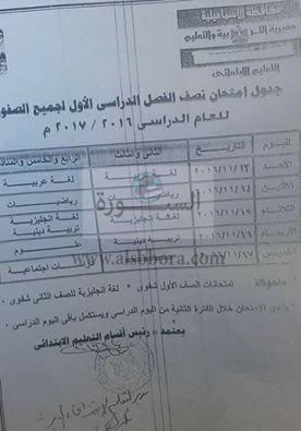 واعتمدت الادارات التعليمية الثمانية على مستوى المديرية جدول الامتحانات مع الزام المدارس بالمواعيد المقررة بالجداول