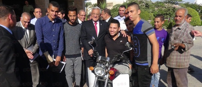 وفى نهاية الاجتماع، وافق رئيس الجامعة على الطلب المقدم من الطالب عنتر فنجري من ذوى الاحتياجات الخاصة بالموافقة على شراء موتوسيكل مجهز والمساهمة في شراء الكتب الدراسية ودفع الرسوم له وقام رئيس الجامعة بتسليمه للطالب.
