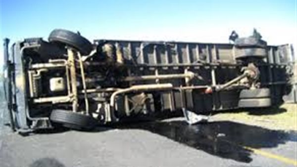 انقلاب مقطورة بطريق السويس بسبب سوء الاحوال الجوية