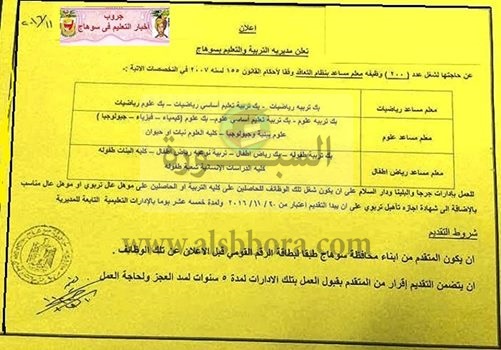 محافظة سوهاج تعلن وظائف جديدة للمعلمين التقديم 20 نوفمبر ..ننشر التخصصات المطلوبة