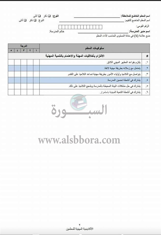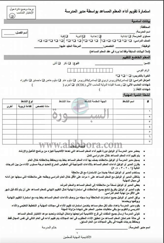 تنشر"السبورة" استمارات تقييم المعلم بشأن الترقيات واليكم صور الاستمارات :