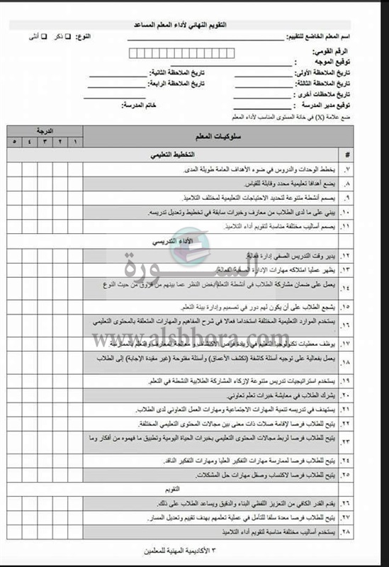 ننشر.. استمارات تقييم المعلم بشأن الترقيات
