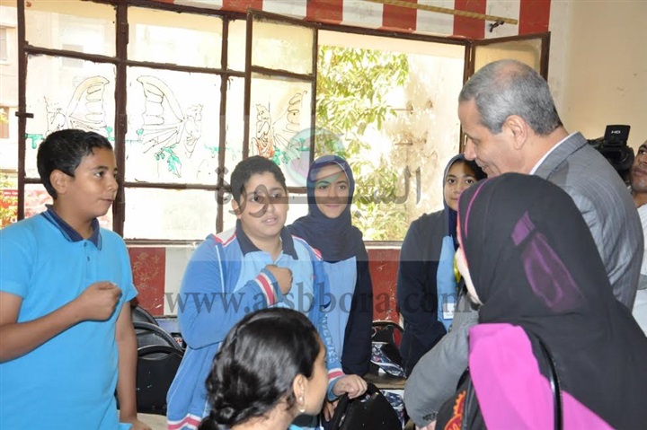 حضر الوزير طابور الصباح، واستمع إلى الإذاعة المدرسية، وتحية العلم، وتفقد قاعات رياض الأطفال، وفصول المدرسة، كما حرص على تفقد حجرات الأنشطة المختلفة، ومدى تفعيلها، والتى تضمنت التربية الزراعية، والاقتصاد المنزلى، والتربية الفنية، والمسرح المدرسى.