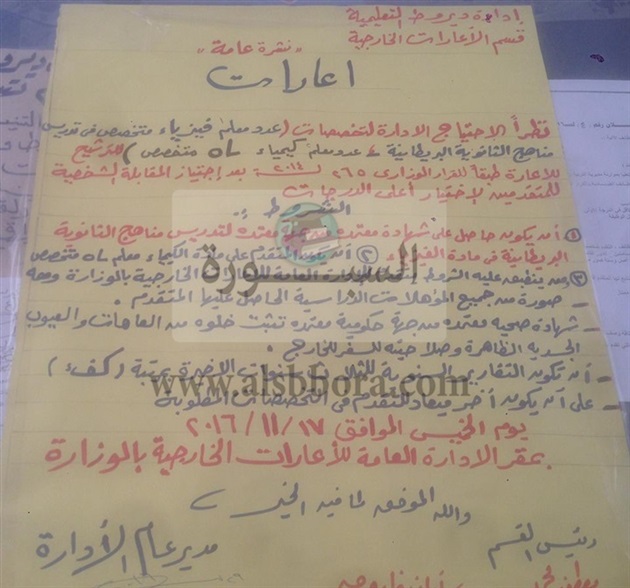 وعلى الراغبين فى التقدم تسليم الطلبات بمقر الادارة العامة للاعارات