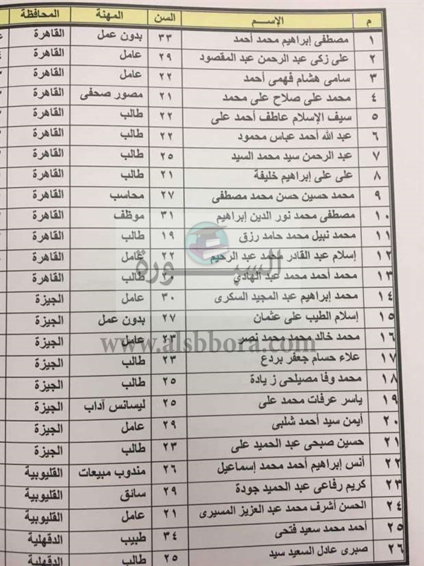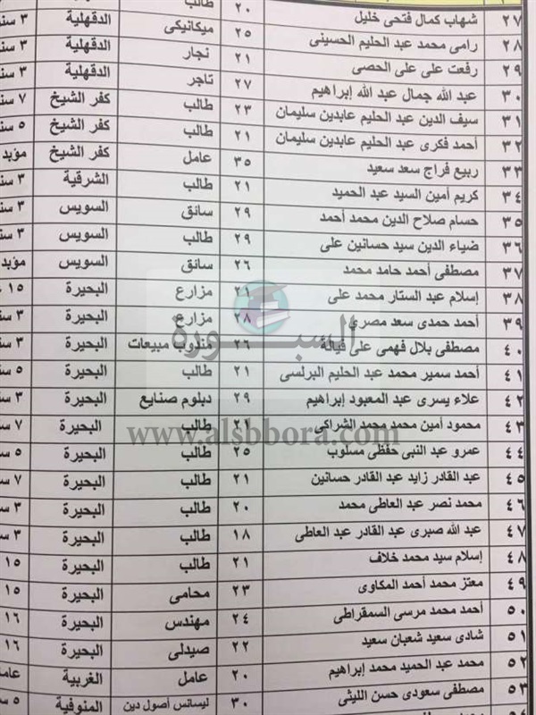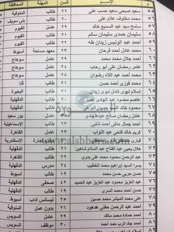 وفيما يلى كشوف بأسماء المفرج عنهم.