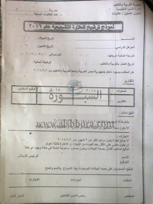 ننشر..نموذج التقديم للعلاوة التشجيعية للمعلمين والعاملين بالتعليم لعام 2016 وشروط الحصول عليها
