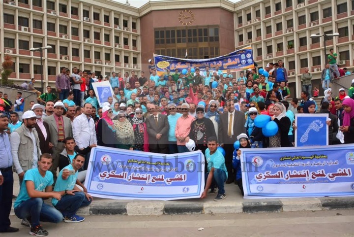 نظمت وحدة الغدد الصماء بقسم الإمراض الباطنة بكلية الطب بالتعاون مع قسم علوم الصحة الرياضية بكلية التربية الرياضية بجامعة أسيوط مارثون للجري والمشي بعنوان " المشي لمنع انتشار السكري" للتوعية بمرض السكري والحد من انتشاره وذلك تحت رعاية الدكتور احمد عبده جعيص رئيس الجامعة والدكتور طارق الجمال نائبه لشئون الدراسات العليا والبحوث والمشرف على كلية الطب وبحضور الدكتور احمد صلاح قراعة عميد كلية التربية الرياضية والدكتورة لبنى التونى رئيس قسم الأمراض الباطنة بكلية الطب وعدد من وكلاء كليتي الطب والتربية الرياضية وأعضاء هيئة التدريس .