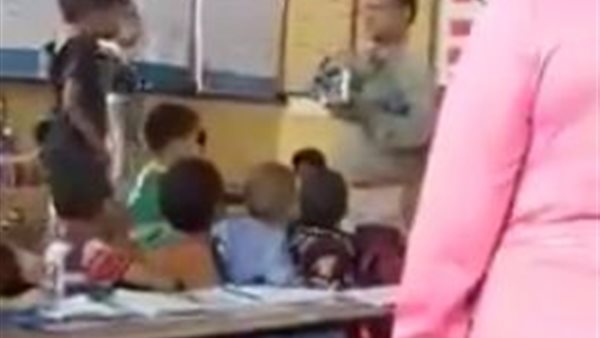 بالفيديو| شاهد أحد مديرى المدراس يبيع "بسكوت وشيبسى" فى مكتبه للتلاميذ