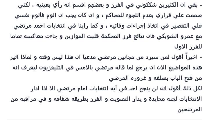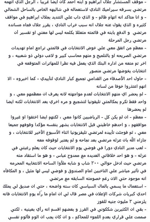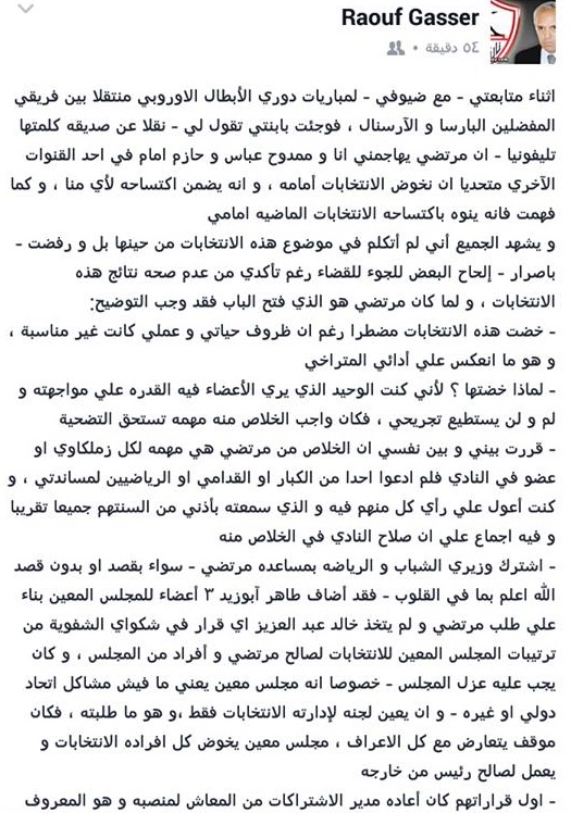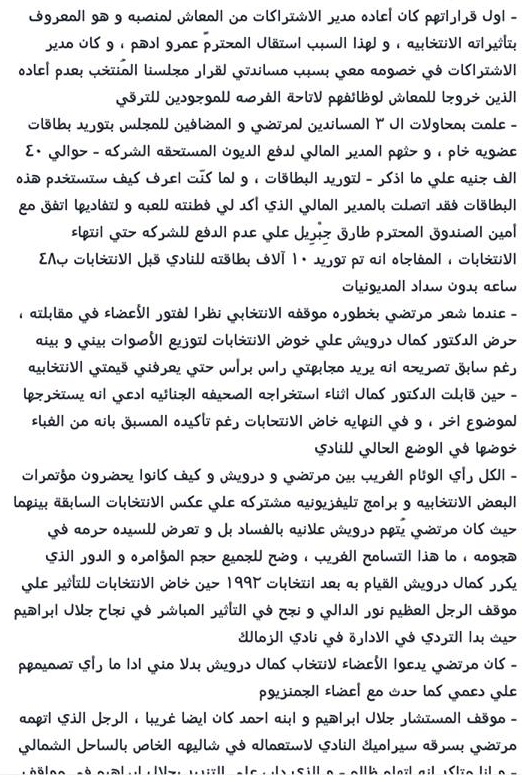 وأوضح جاسر خلال بيانه كيف أديرت لعبة الانتخابات الماضية محملا طاهر أبوزيد وخالد عبدالعزيز أسباب ماحدث وجاء البيان كالتالي:-