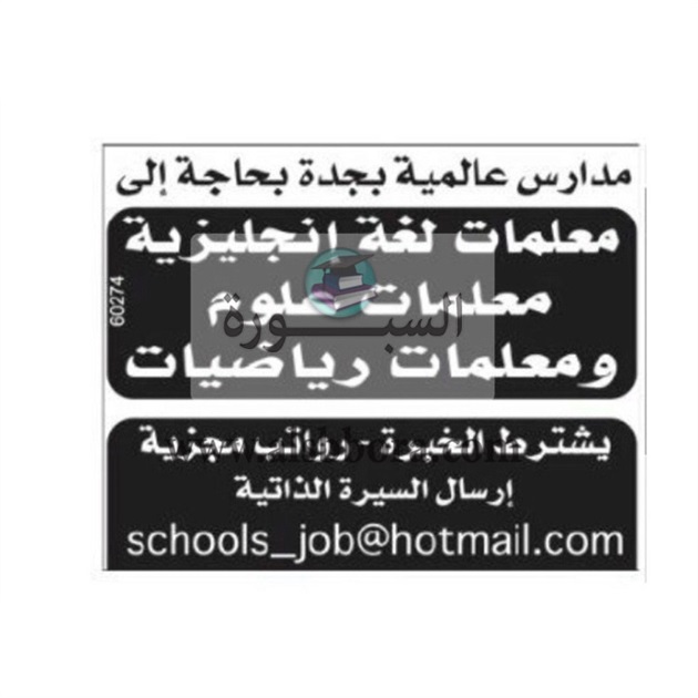 تعلن عدد من كبرى المدارس العالمية بجدة في السعودية عن حاجتها للتعاقد مع معلمين وذلك في التخصصات الواردة فى نص الإعلان التالي: