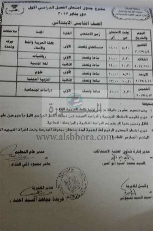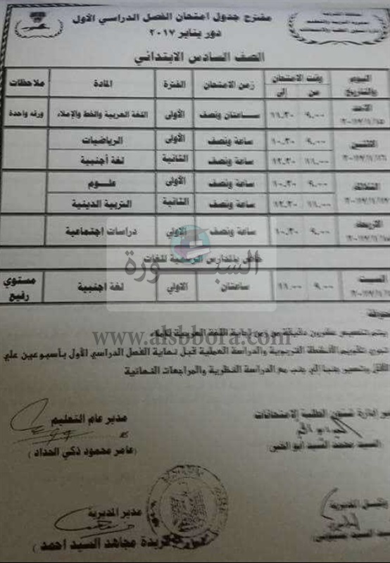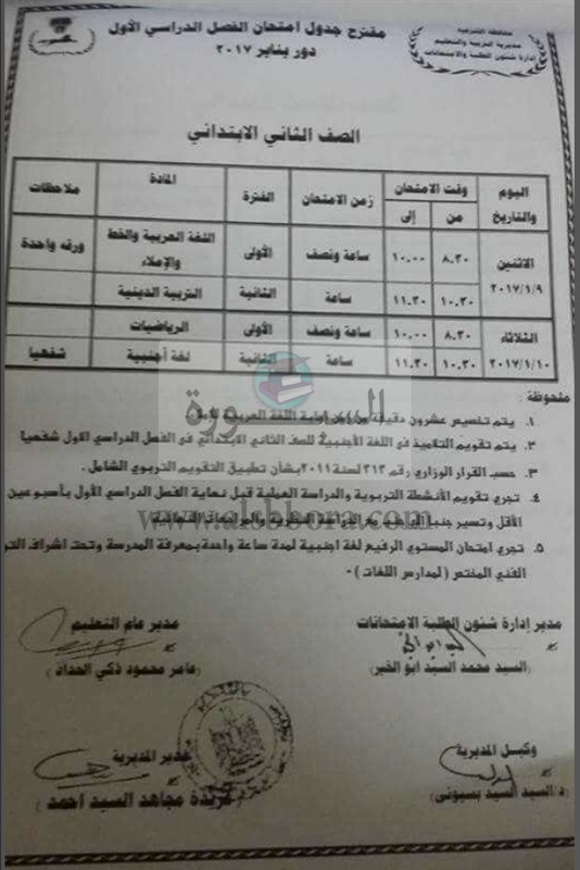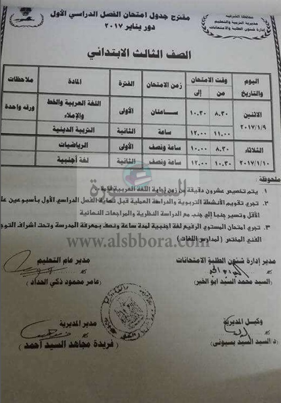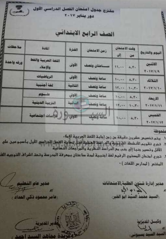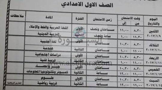 ننشر.. جداول امتحانات الفصل الدراسى الاول 2017 لجميع المراحل التعليمية" ابتدائى - اعدادى - ثانوى" بالمحافظات