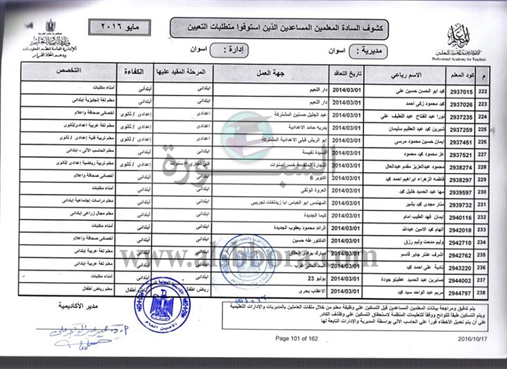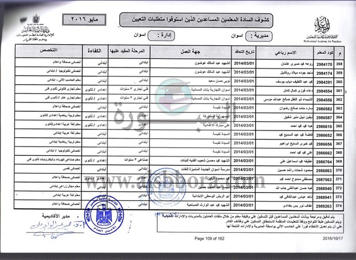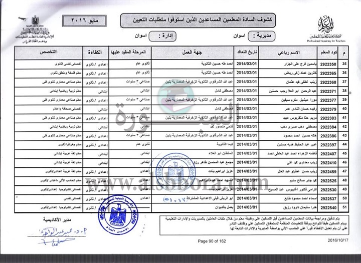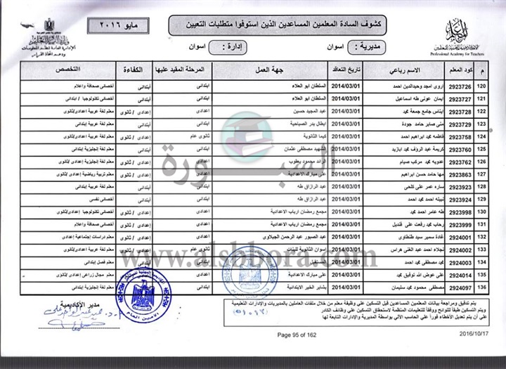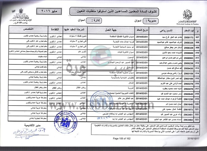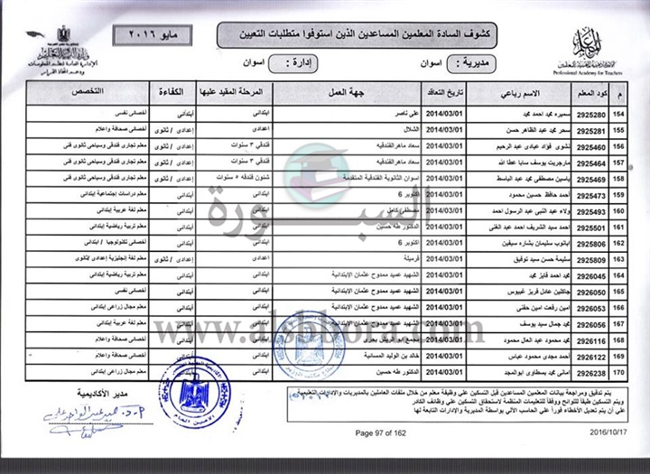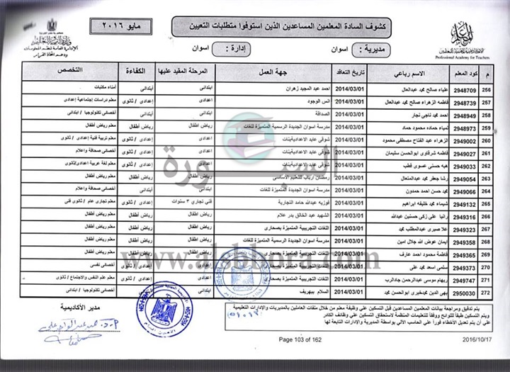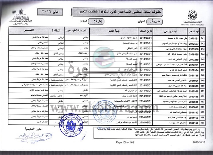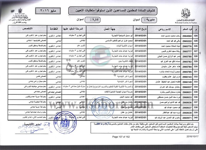 عاجل.. ننشر أسماء المعلمين المساعدين المرقين على درجة معلم بمحافظة أسوان وبالقرار الوزارى رقم 355 لسنة 2016