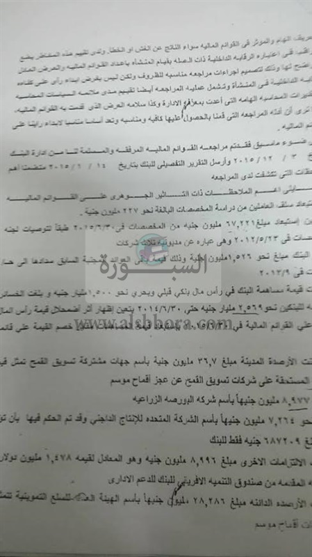 كشفت حملة "مين بيحب مصر" عن تقرير الجهاز المركزى للمحاسبات والذى صدر يوم 15/2 2016، والذى يوضح الخسائر التى تمت فى البنك خلال فترة تولى عطية سالم رئيس مجلس ادارة بنك التنمية والائتمان الزراعى الاسبق.